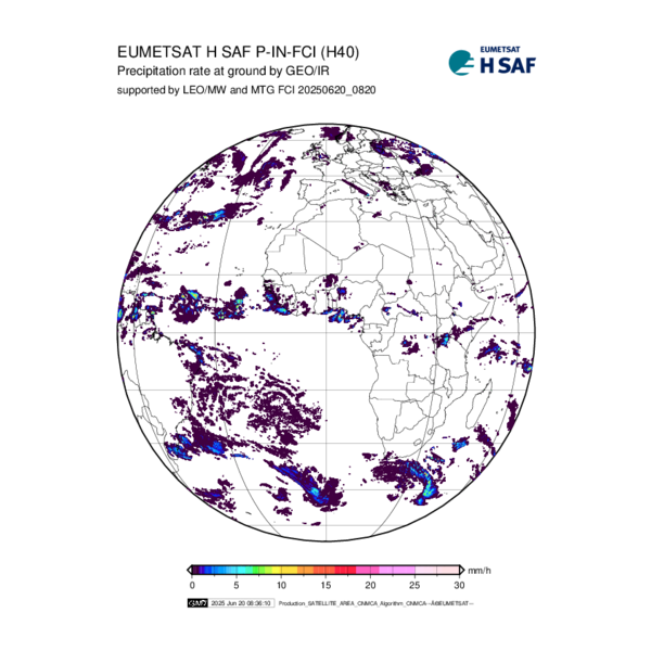 Precipitation rate at ground by blended FCI IR / LEO MW precipitation - MTG - 0 DegreeAn instantaneous precipitation map is generated by IR images from the MTG FCI “calibrated”